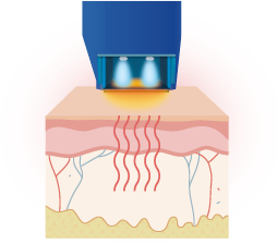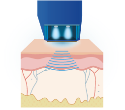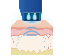 引發皮膚水分子轉動而產生熱力 , 即時3D式立體加熱整個皮層至55∘C , 瞬間收緊膠原蛋白 , 激活纖 維母細胞 , 誘發膠原再生。