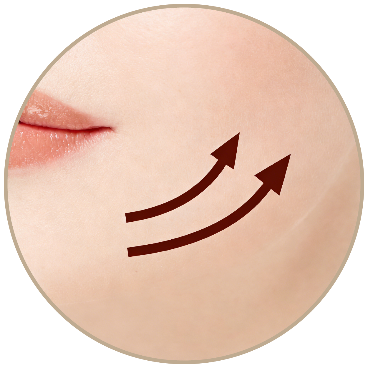 能量深入真皮層,即時扭緊膠原螺旋結構,同時刺激纖維母細胞,增生膠原蛋白及彈力蛋白,達致緊緻去紋,回復皮膚彈性。